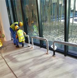 辦公區(qū)中庭玻璃處防撞柱現(xiàn)場安裝施工項(xiàng)目